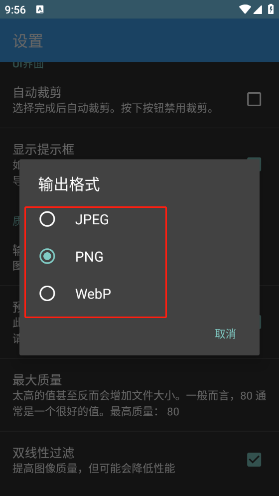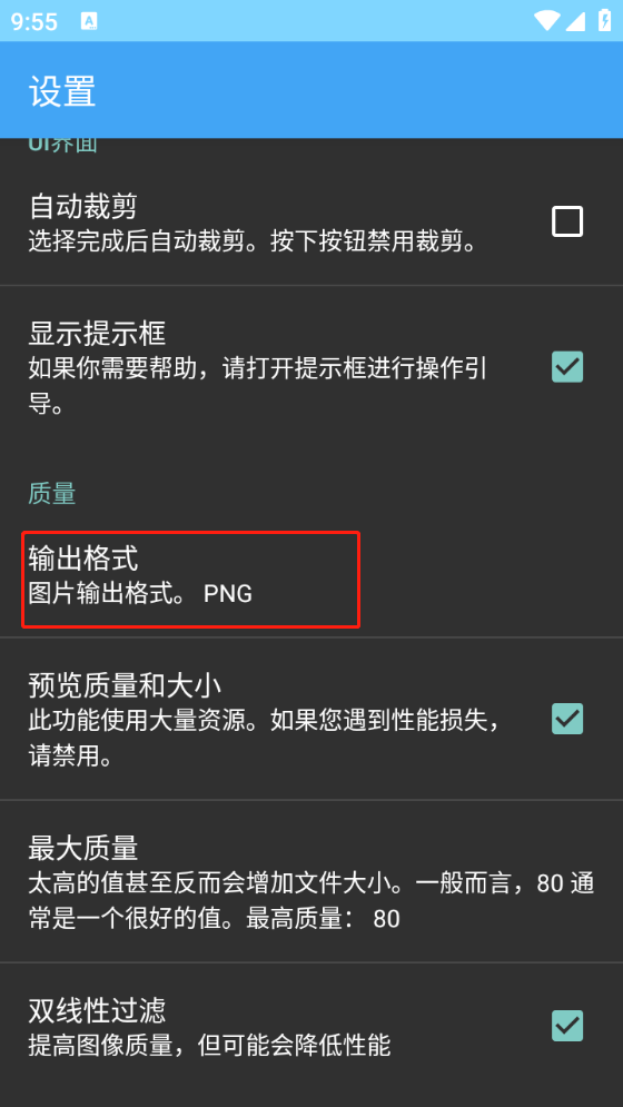3、在出现的页面中往下翻动找到“输出格式”并点击。