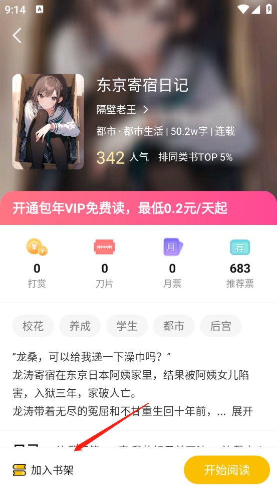1、打开您喜爱的小说并进入详情页面,点击左下方的“加入书架”按钮。