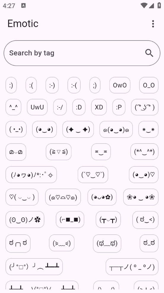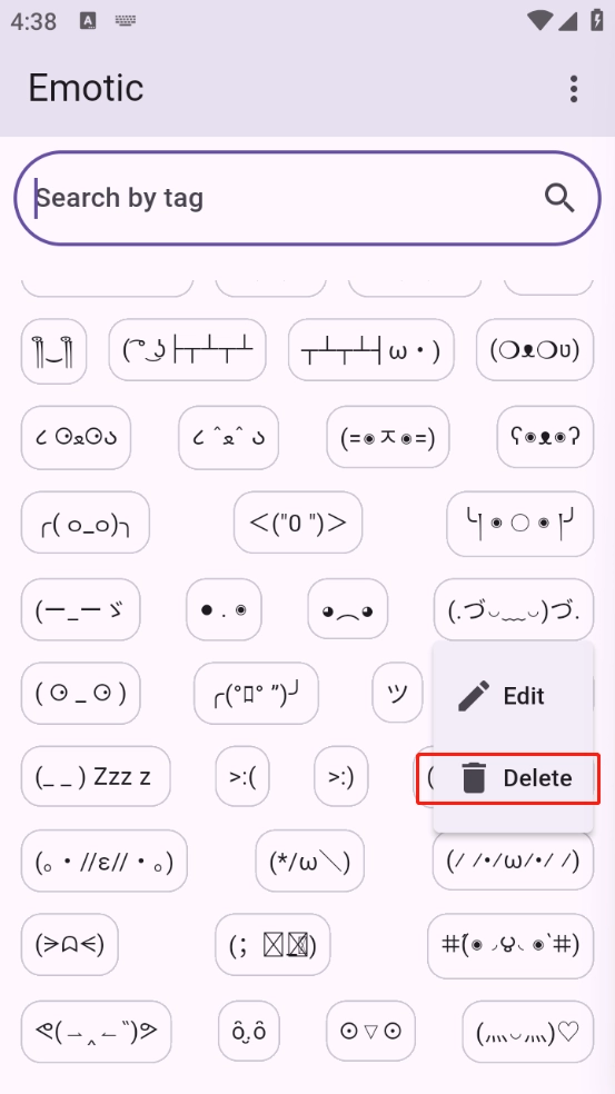Emotic ,这是一款颜文字表情包分享平台,用户进行添加自己需要的颜文字表情,可以长按表情进行编辑,让大家聊天更加有氛围感,不断更新表情库,可以将颜文字进行分享、复制,各种颜文字表情包等你来用。