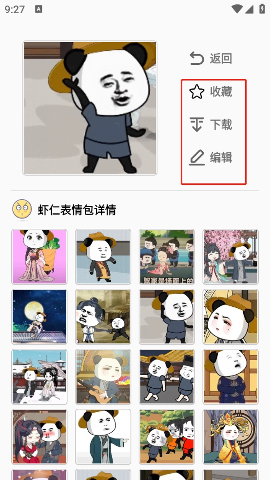 4、在“头像/表情包板块,可以进行、收藏以及编辑。