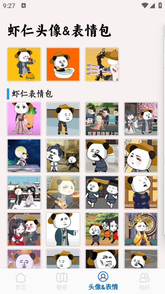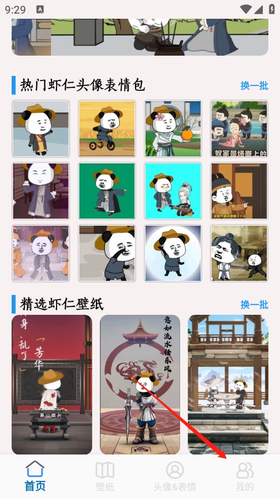 2、首页主要是推荐当下很火爆的头像、表情包以及壁纸资源。
