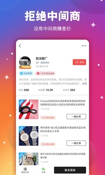 入驻商家可自主发布商品,找货批发环节直接对接厂家,平台公开多样化联系方式,保障双方无障碍直接沟通,支持用户与商家点对点联系,全程不收取任何服务费用,坚决杜绝中间差价。