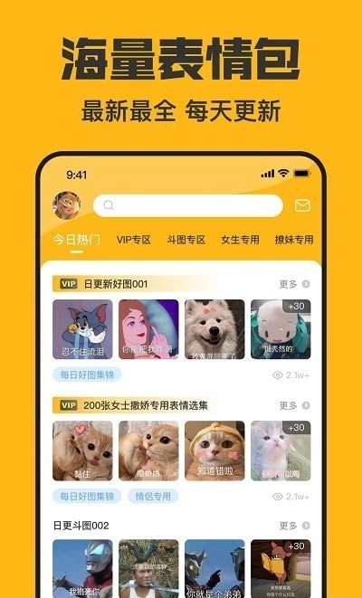 应用,里面收录了五百多个当下热门的表情素材。应用内对表情包