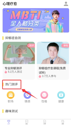 4、趣味探索区设有诸如人格测试、情商评估这类轻松有趣的心理学互动游戏。