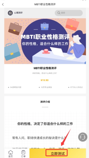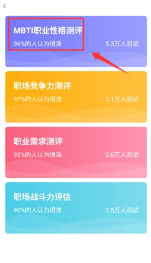 2、找到“MBTI性格测试”功能入口,点击进入测评说明界面。