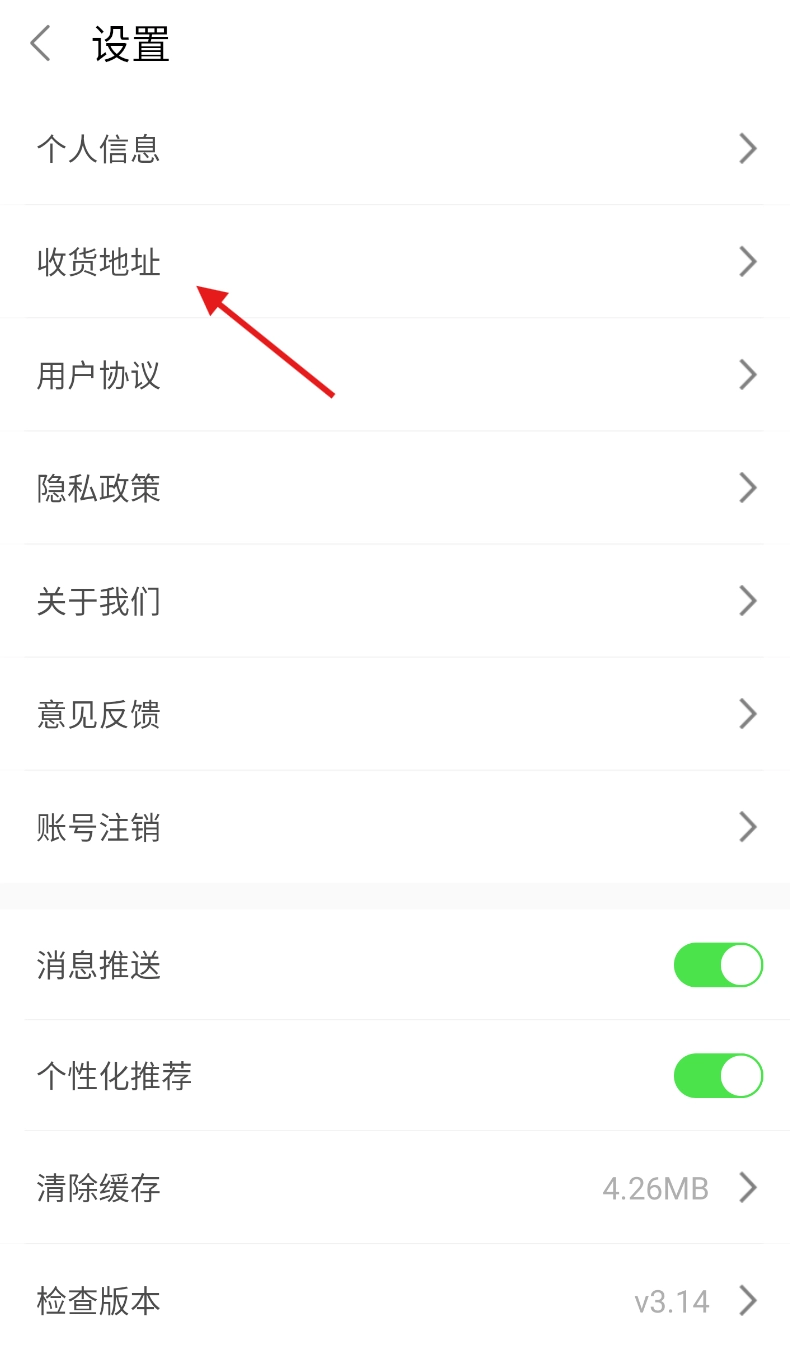在设置界面的众多选项里,仔细找一找并选中“收货地址”这一项,就能跳转到地址管理页面了。