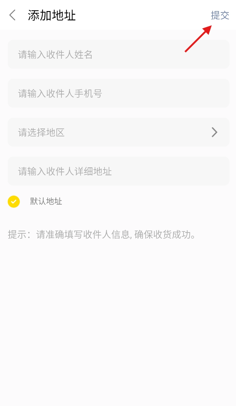 当弹出地址填写界面时,请详细录入收件相关信息,在确认所有内容准确无误后,点击“提交”按钮,即可完成地址的添加操作。