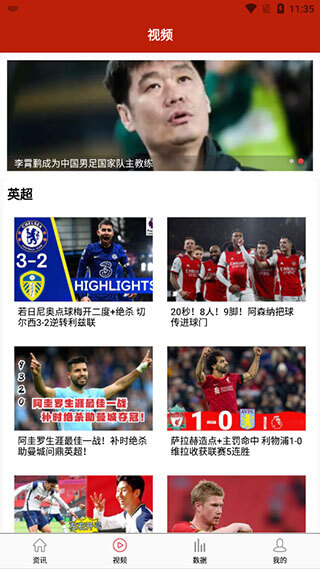 1. 打开软件,在首页便能看到诸多你喜爱的球赛资讯与球队资讯。