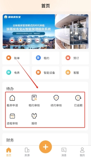 2、点击下方待办事项,快速管理房源,轻松处理各项租赁事务,无论是发布新房源还是审核租约,都能高效完成。