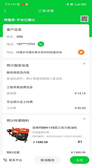 农机保工程师App专为农机维修工程师打造线上接单服务,其后台系统会及时为工程师派发维修订单。借助该App,工程师能够在线接收订单,大幅提升工作的便捷性与效率;同时,工程师可直接在软件内申请所需维修物料,无需自行前往市场采购,这不仅有效缩短了维修周期,还降低了各项成本支出。此外,App规范简洁的操作流程,也进一步助力工程师提高整体工作效率。