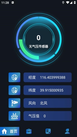 2、进入平台首页,能够获取经度、纬度等数据信息,同时还能知晓风向及气压值数据。