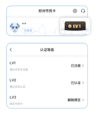 2、点击Lv1,完成实名认证、市民卡绑定。