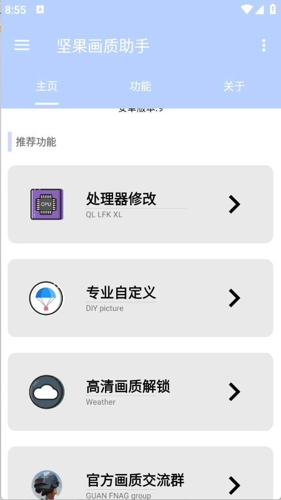 坚果画质助手,专门为和平精英玩家打造的画质助手,可以优化音质、画质,所有的功能都是免费的,玩游戏过程中不会出现任何的卡顿闪退现象,超级方便,功能强大,运行稳定,想要提升游戏画质的玩家一定不要错过了。