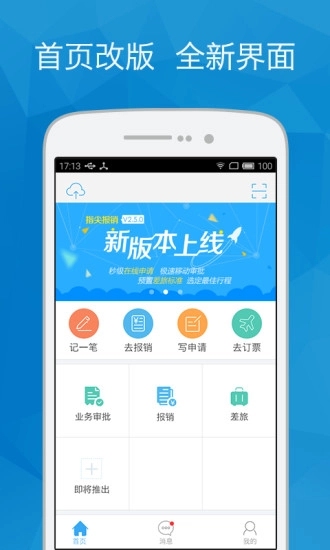 1、指尖报销界面简洁明了,操作简单方便,用户不用经过复杂培训就能迅速熟练使用。