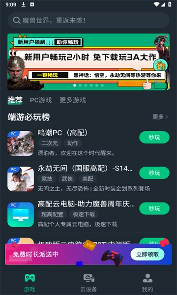 实现随时随地即点即玩,借助云技术,无需在本地设备上安装大型游戏。