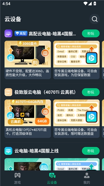 高配置游戏体验:通过云端服务器,即使是高配置要求的游戏也能流畅运行。