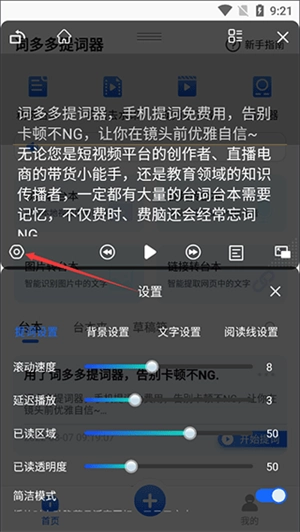 3、语速调节:可根据个人需求自定义设置台词的滚动速度,使其与说话的节奏相匹配。