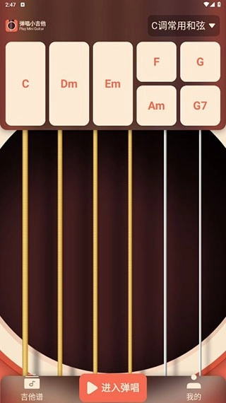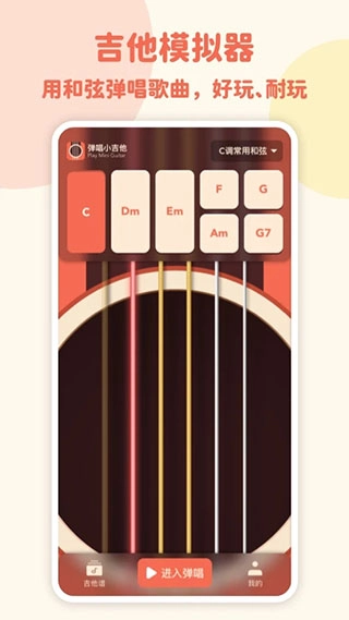 弹唱小吉他是一款面向吉他爱好者的专属软件,虚拟吉他模拟功能,方便用户在手机端进行吉他的练习与演奏。该软件涵盖C调和G调的常用和弦,用户不仅能自行设置和弦,还可给和弦加入外音。此外,它具备右手节奏自动弹奏的功能,能让练习过程更富趣味性。