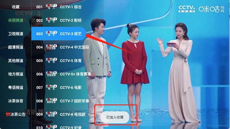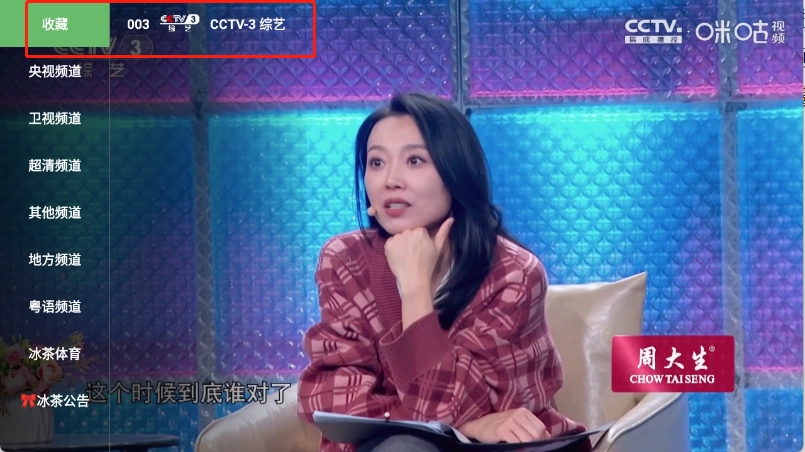 4、点击左上角的收藏就可以看到收藏的频道了。