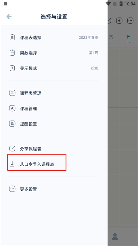 2、找到从口令导入课程表并点击进入;