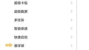4、点击悬浮球,在 弹出的界面里将它的开关打开。