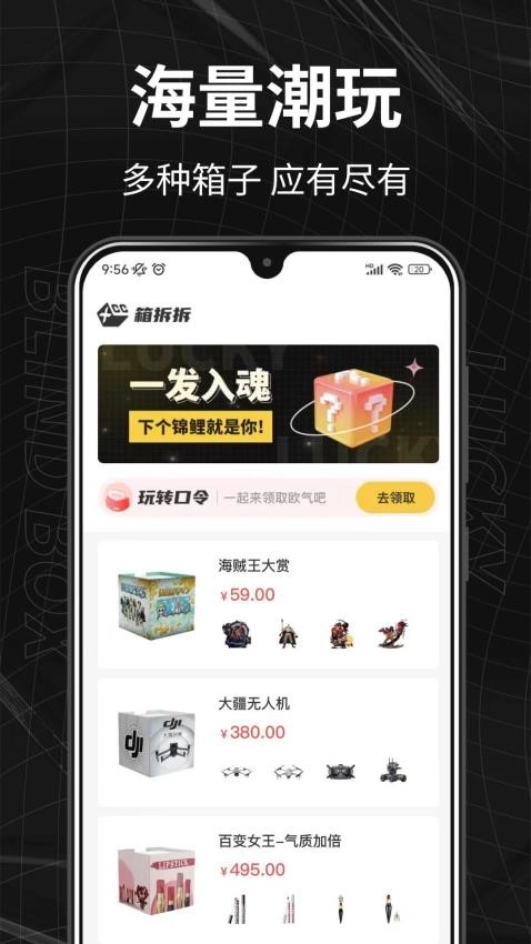 在箱拆拆App里,用户能够浏览和选购各式各样的商品,平台提供多种支付方式以便用户结算;此外,用户还能参与抽奖活动,说不定能收获意想不到的惊喜礼品。