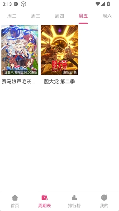 2.点击进入周期表页面,排期表提供每天动漫更新情况