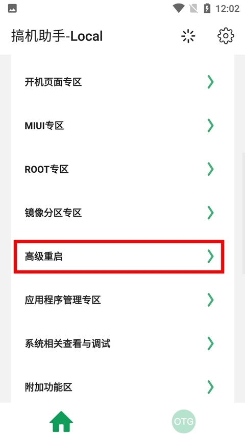1、进入到软件首页之后,在功能板块中找到高级重启;