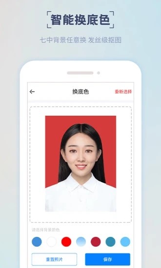 数百种证件照规格尺寸,满足你证件照的使用场景需求:考驾照、普通话测试、教师资格证、会计考试、护士资格证、公务员考试、四六级考试、留学出国、雅思托福报名,宝宝证件照、微商、签证等各种需求一键满足。更多多种背景色可选,还能一键P图轻松换底,便捷省力。