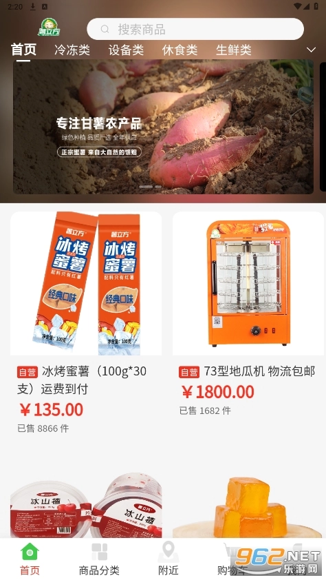 ,并能直接下单购买。平台支持安全的支付方式,同时提供快捷的配送服务,保障用户轻松购得新鲜的甘薯农产品。此外,应用还涵盖设备类、休闲食品类与生鲜类产品,供用户挑选购买!软件