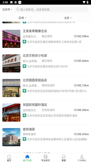 也能切换至对应的餐厅列表,可依据距离、区域、业态开展合理筛选。
