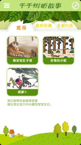 1、用户们大多表示,千千树听故事的界面设计清新又可爱,对孩子有着很强的吸引力。