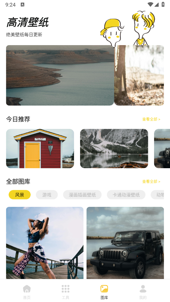 4、在“图库”页面,有丰富的壁纸资源可以免费获取。