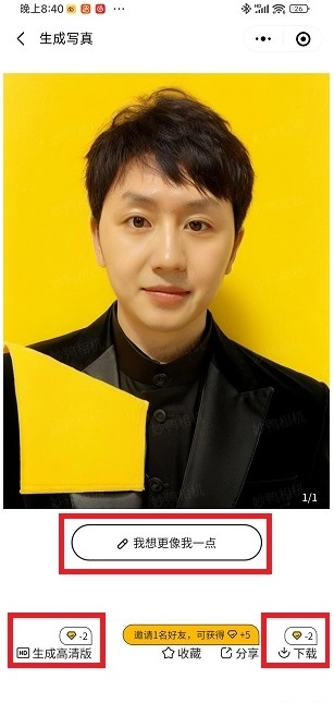 生成的写真不仅能挑选不同造型,还具备高清化、微调“更像我”等功能,并且可以随时继续进行美化操作。