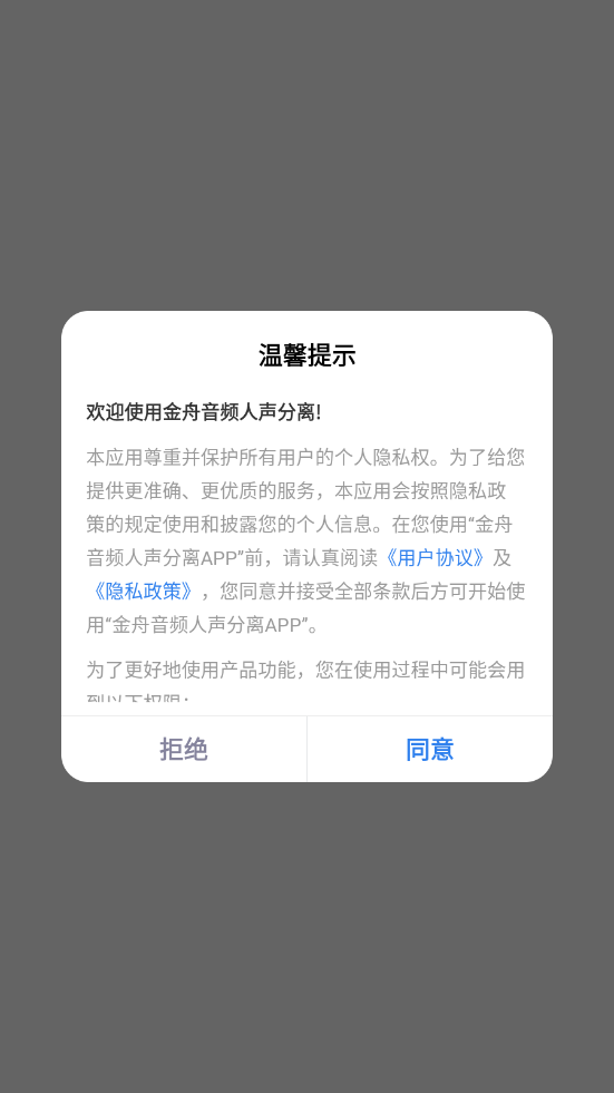 1、安装金舟音频人声分离软件,并同意与之相关的各项政策及协议。