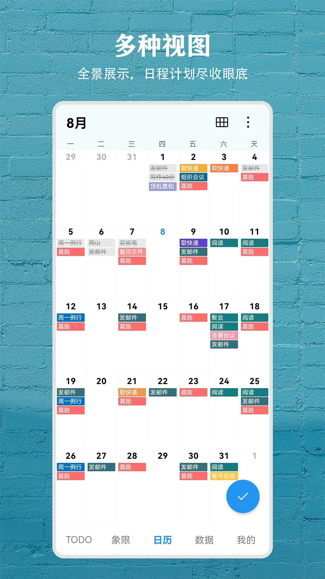 提供多种视图包括周视图、月视图,所有内容轻松查看
