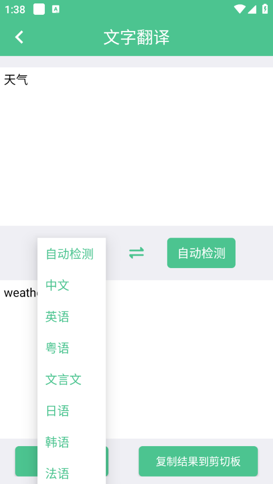 4、直接在输入框中输入需要翻译的内容,选择目标翻译语言,点击“翻译”按钮即可完成操作,翻译结果支持复制。