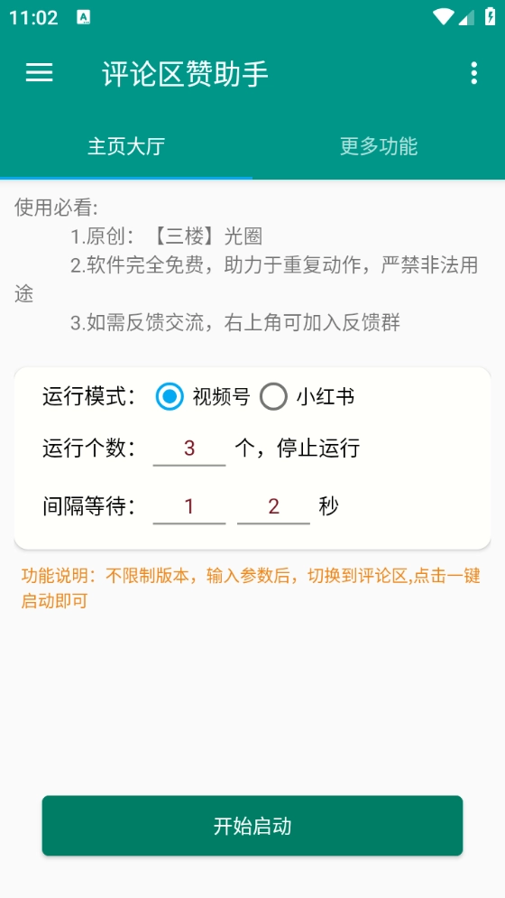 评论赞助手,一个自动为小红书或者视频号进行自动点赞的工具,特别是对于自媒体行业的用户来说是很不错的,有助于拓客,可以设置点赞个数、间隔时长等,使用过程中安全无定都,不会造成封号的现象,每天的点赞数量以及评论数量都会有一个详细的统计。