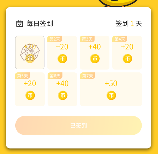 注意:每日签到奖励续连续签到,断签则重新开始计算天数