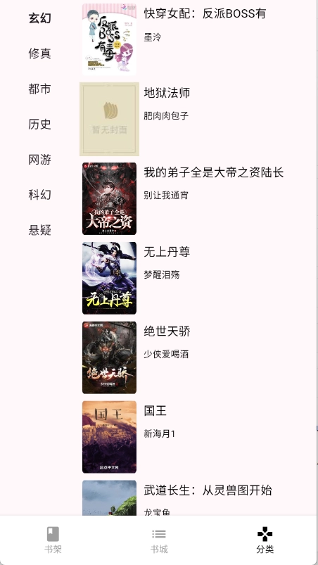 “分类”页面将小说进行了更详细的归类。