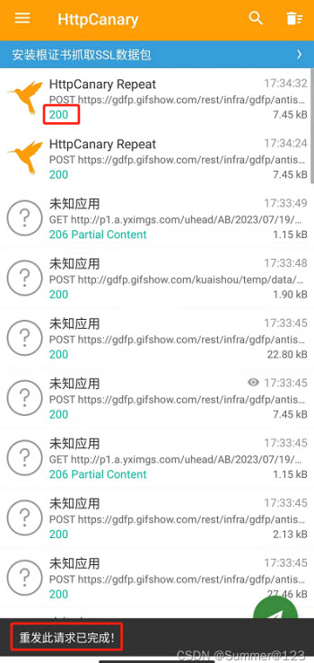 有时接口响应失败可能是网络问题导致的,这种情况下可以直接通过httpcanary工具进行重发操作。
