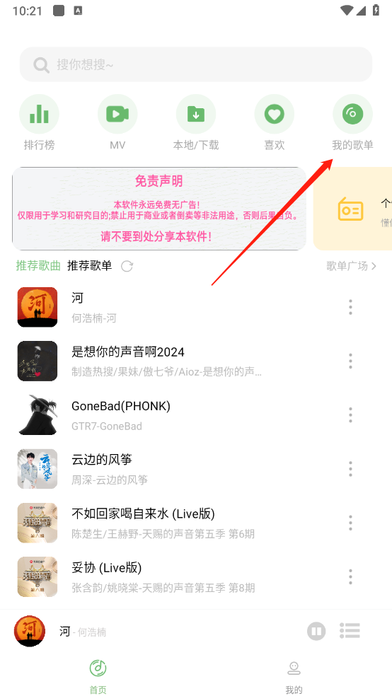 1、打开软件后,在首页选择歌曲或者是搜索歌曲。