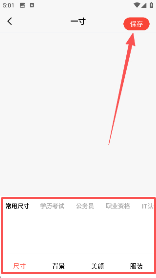 4、在编辑页可调整尺寸、背景等参数,完成后点击【保存】即可导出符合规格的证件照电子档。