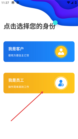 1、在身份选择页,选择【我是员工】选项,该身份适配高效工作的操作场景,可进入对应功能界面。