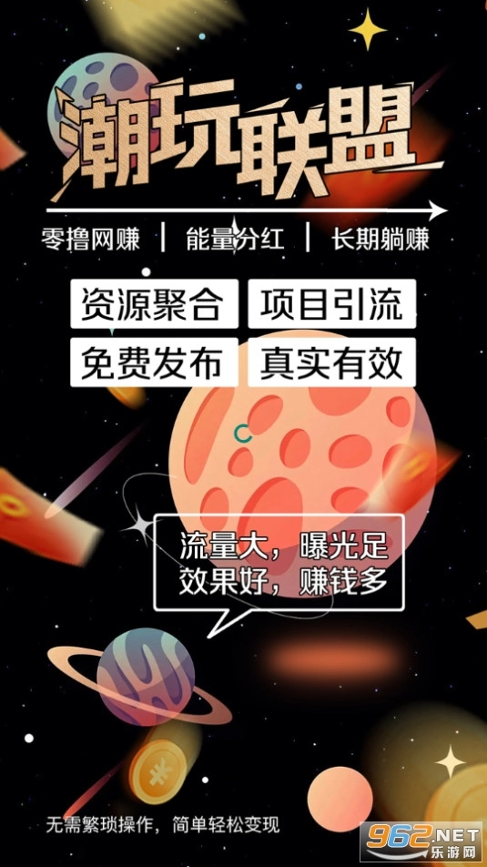 《潮玩联盟》是一款十分实用的网赚平台软件,整合了各类资源,免费提供多种可靠的项目,用户可以借助该软件开展赚钱活动,逐步积累收益,从而轻松获取零花钱。有需要的话不妨来试试!