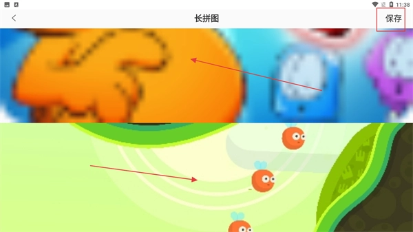 2、在长拼图编辑页完成图片拼接后,点击右上角【保存】,将拼接好的长图存储到设备。