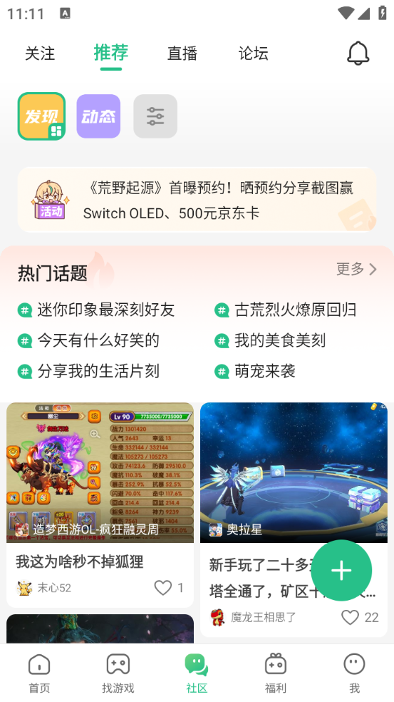 5、回到主界面后,点击“社区”选项,在这个板块中你能够浏览到更多大神发布的动态资讯。