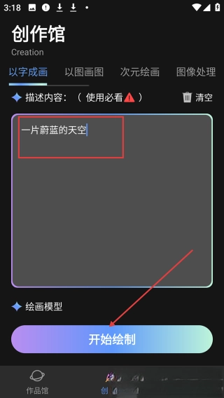 你可以输入提示词或者上传图片,接着点击【开始绘制】按钮,然后耐心等待AI完成生成。