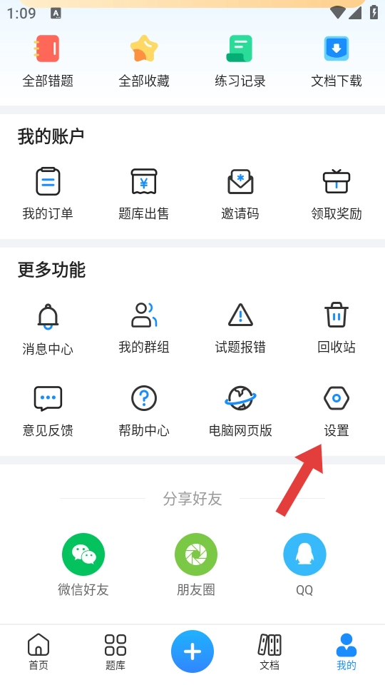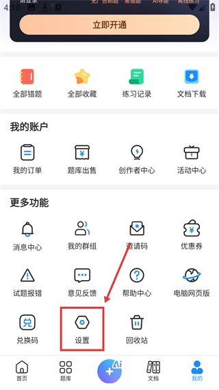 2、进入【我的】页面后,在【更多功能】区域里找到【设置】按钮并点击,即可进入设置界面。