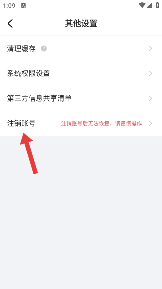 3、在其他设置界面里,点击【注销账号】。